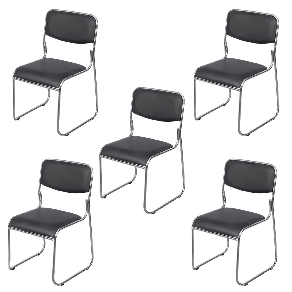 Kit com 5 Cadeiras de Escritório Empilháveis Arezzo Estofado em PU e Estrutura Cromada