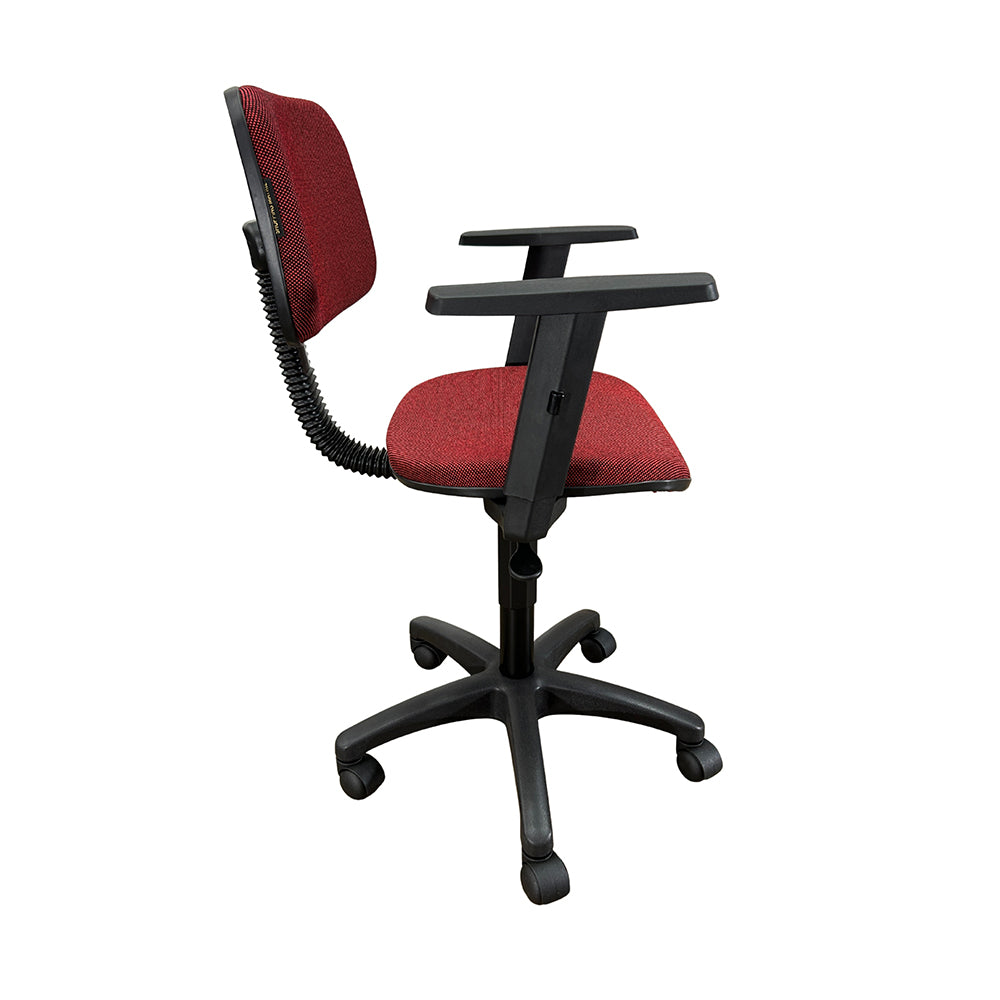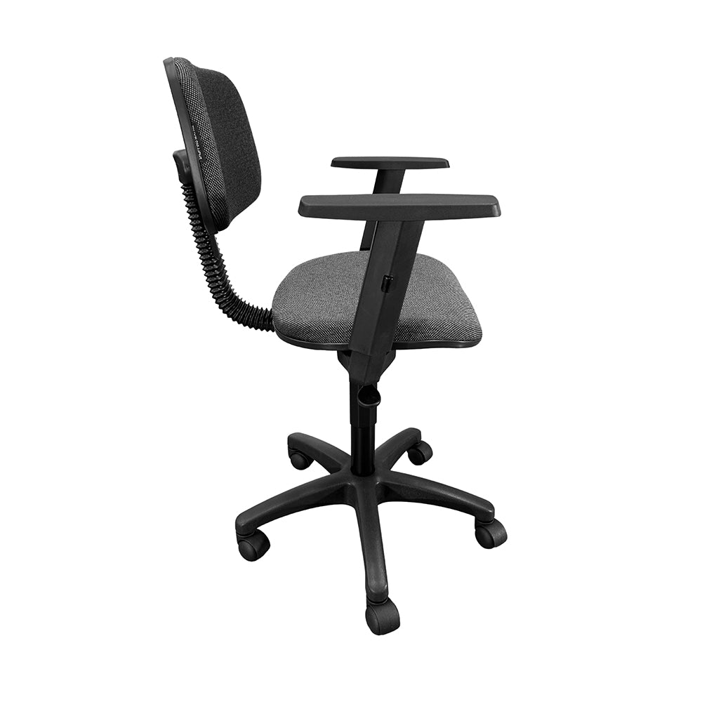 Seu assento e encosto acolchoados, revestidos em tecido, proporcionam comodidade no dia a dia, enquanto os braços ajustáveis e o encosto levemente arredondado oferecem melhor apoio e postura.