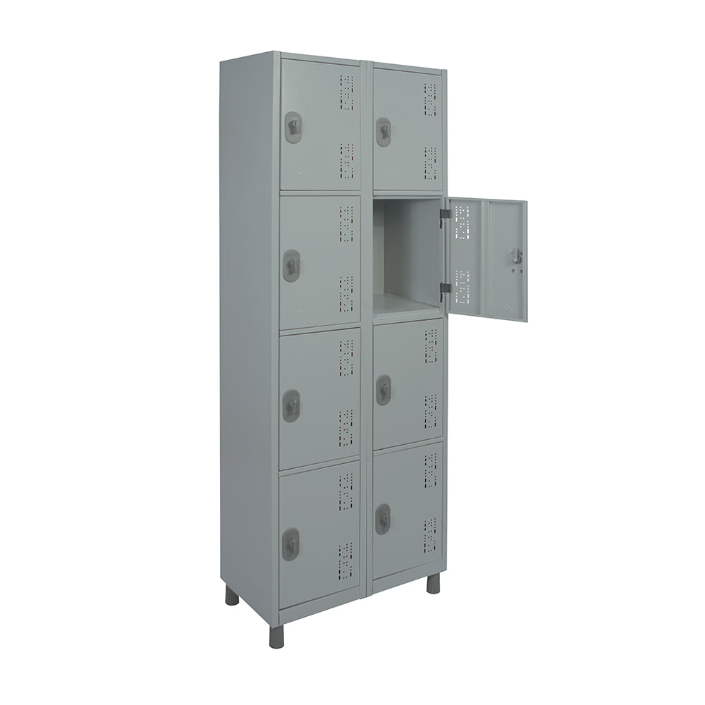 Roupeiro com pitão para cadeado. Pés com altura suficiente que fica a uma distância do chão para facilitar a limpeza. Com 08 vãos para o armazenamento de objetos com uma maior capacidade para o seu conforto. Estampas nas portas que permite ventilação e adequada para manipular, sem áreas de risco de cortes. Feito de aço que aumenta sua durabilidade e resistência mesmo com o uso constante. Exclusiva carenagem protetiva, pintura texturizada eletrostática a pó. OBS*: Este produto é vendido somente montado, atente-se as medidas para retirada em loja ou local de entrega. Medidas do Roupeiro sem o pé: 182cm Altura x 64,4cm Largura x 35cm Profundidade. Medidas do Roupeiro com o pé: 190cm Altura x 64,4cm Largura x 35cm Profundidade.
